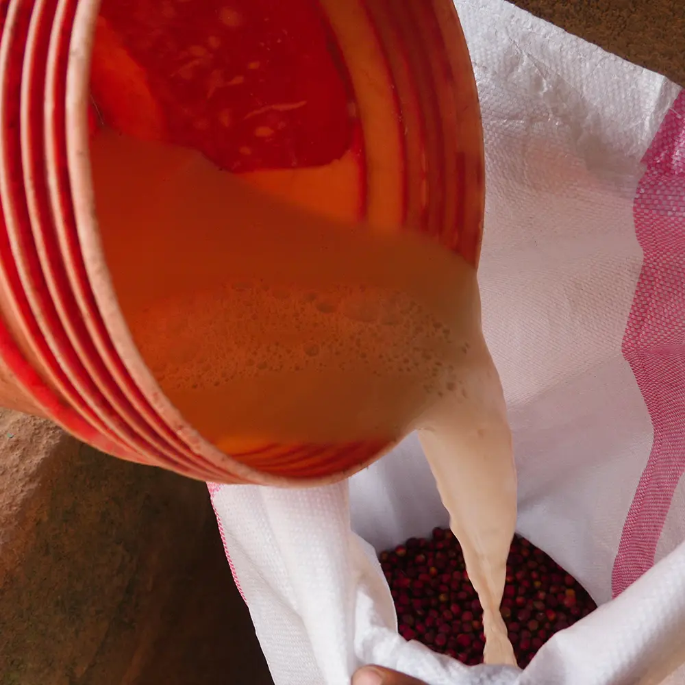 After harvesting, the coffee cherries are pulped and then fermented with a yeast—Lalcafé ORO™—specifically developed for coffee production. The yeast’s unique metabolism—which, among other things, extends the fermentation time—allows the beans’ fresh and fruity characteristics to develop further. The prolonged fermentation also produces more developed flavors with increased complexity, sweetness, and acidity.